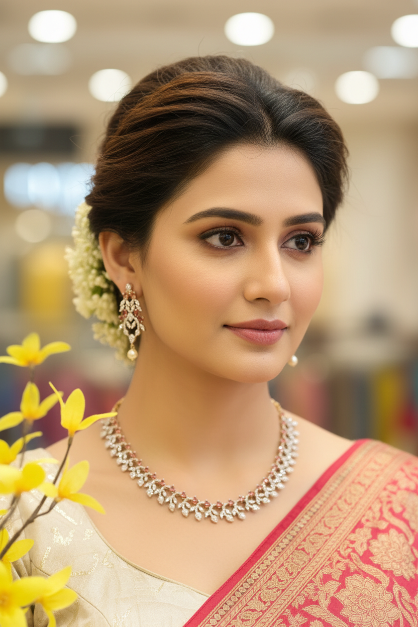 Party Wear CZ Necklace Set with Red Stones