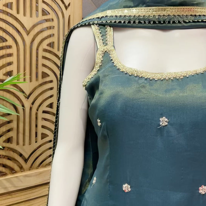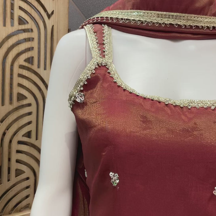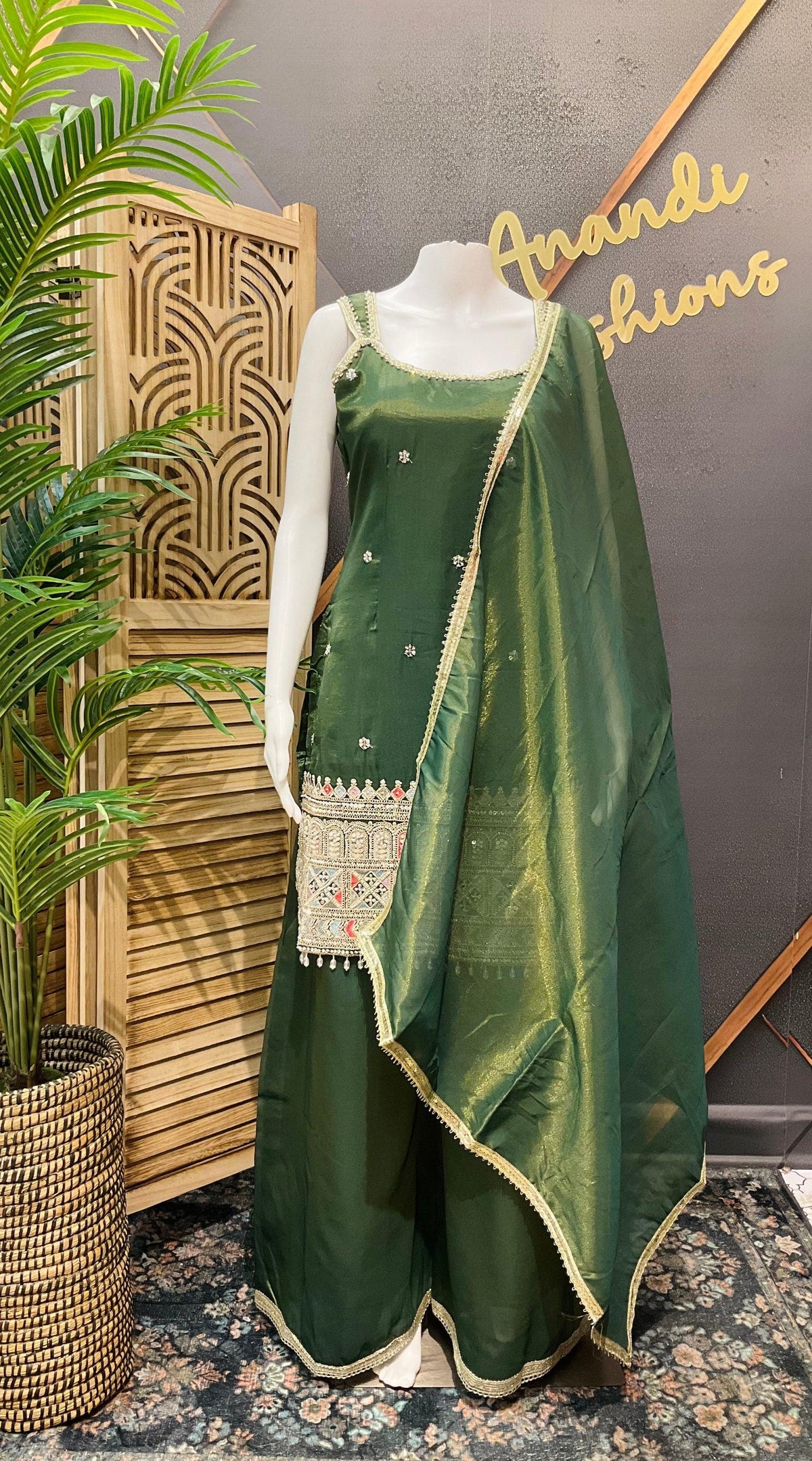 Sleeveless Tissue Sharara Set Size 40 - Designer Party Wear