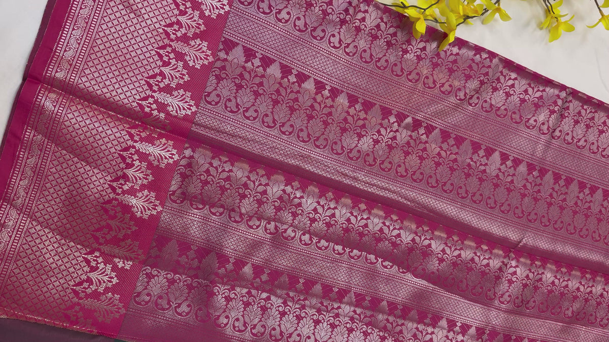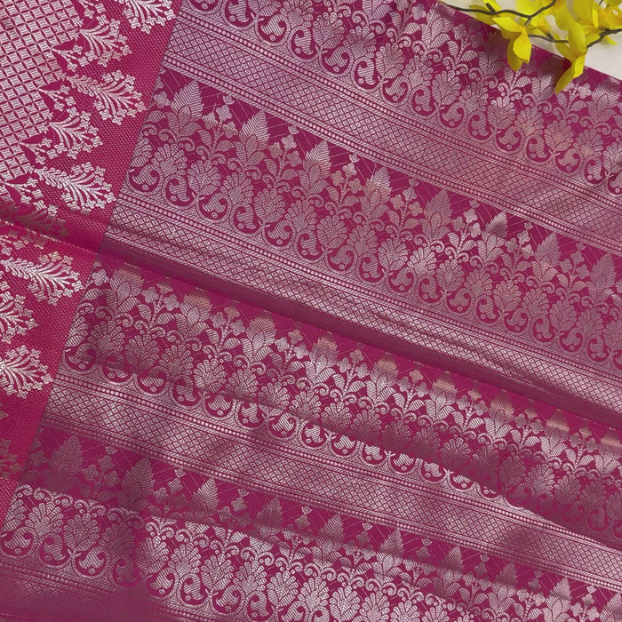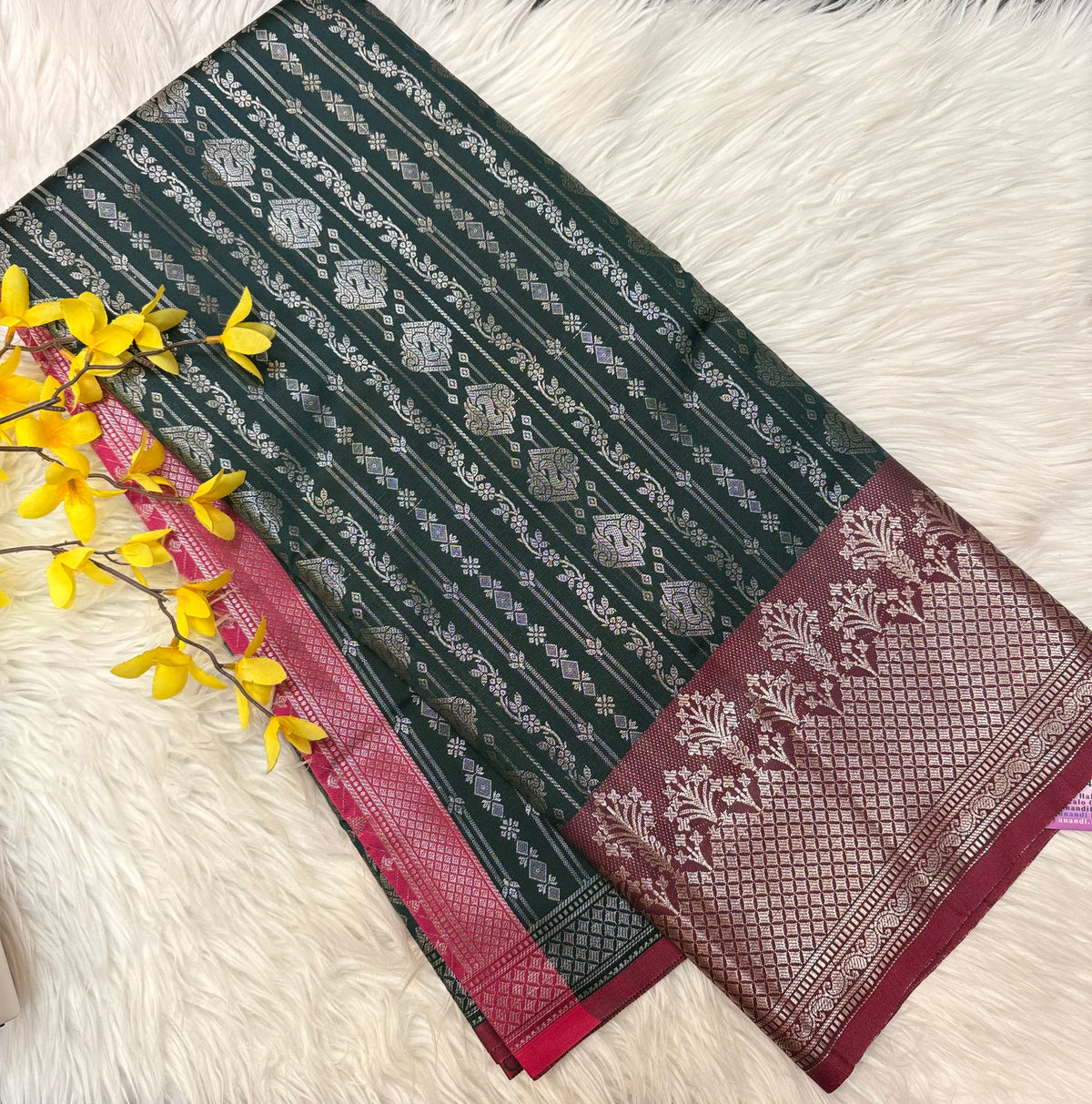Semi Silk Bottle Green Color Saree with Silver Zari and 7 inch border.