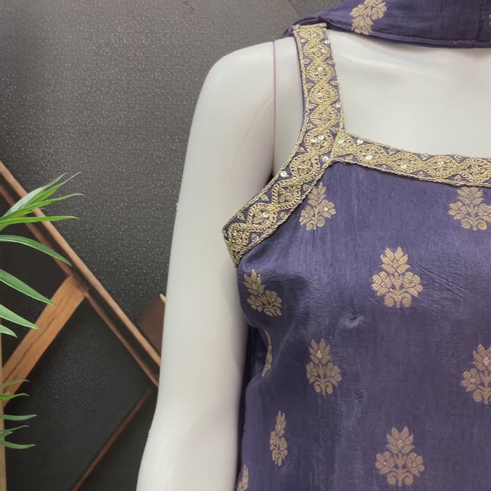 Dark Lavender- Sharara set. Comes with Choker Dupatta. sleeves material is available. Can be attached.