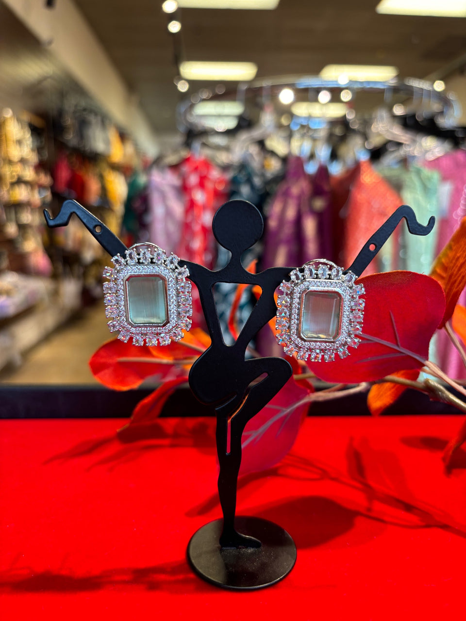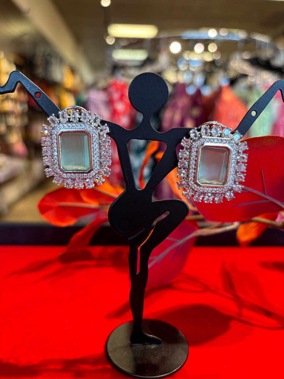 Earrings Studs - Premium Quality CZ Silver Finish Mint Color Earrings