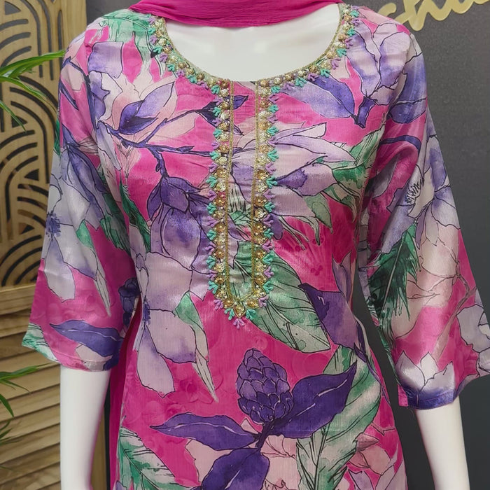 Fancy Kurti Set - Floral Print - Size 36/US XXSmall