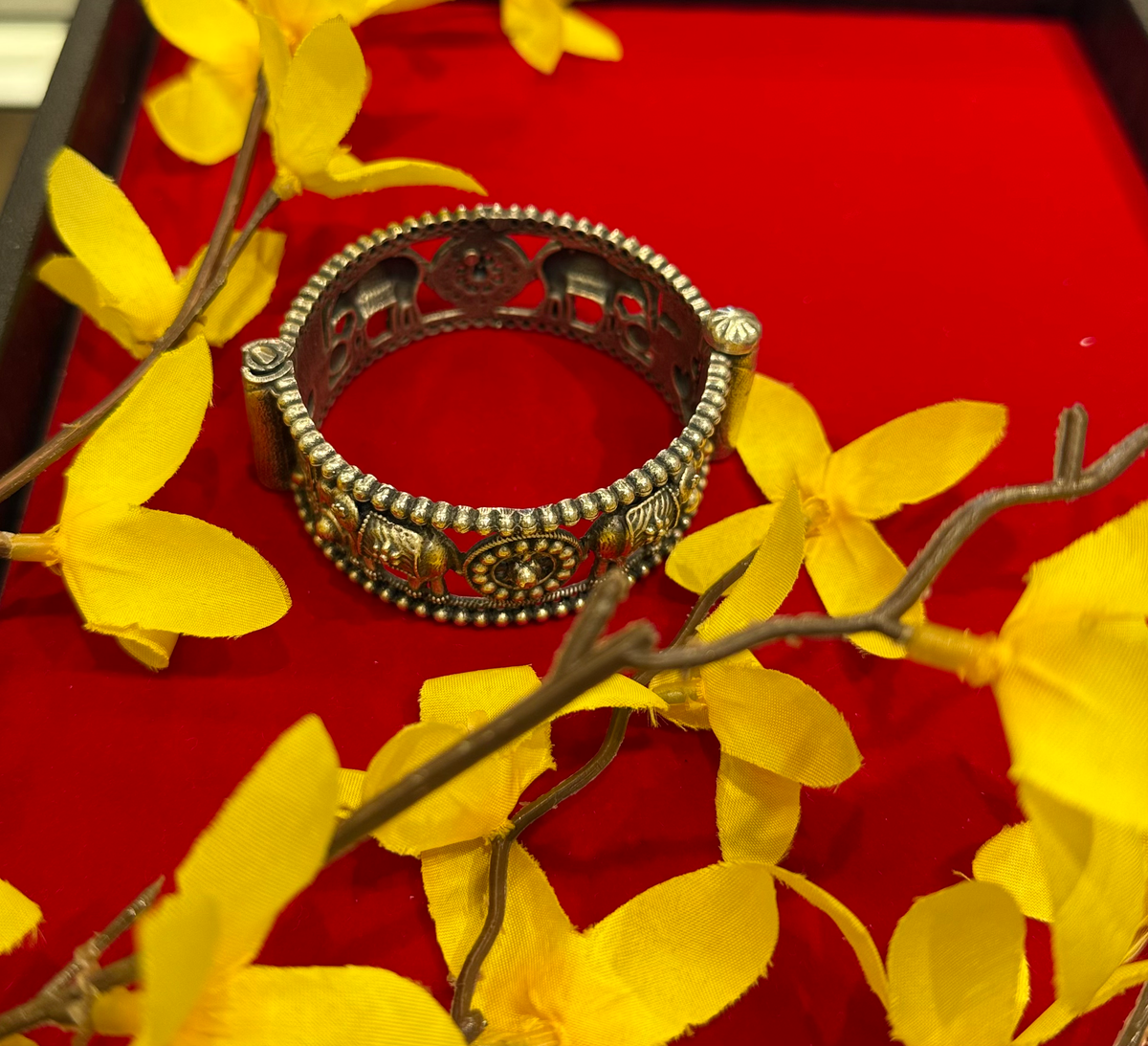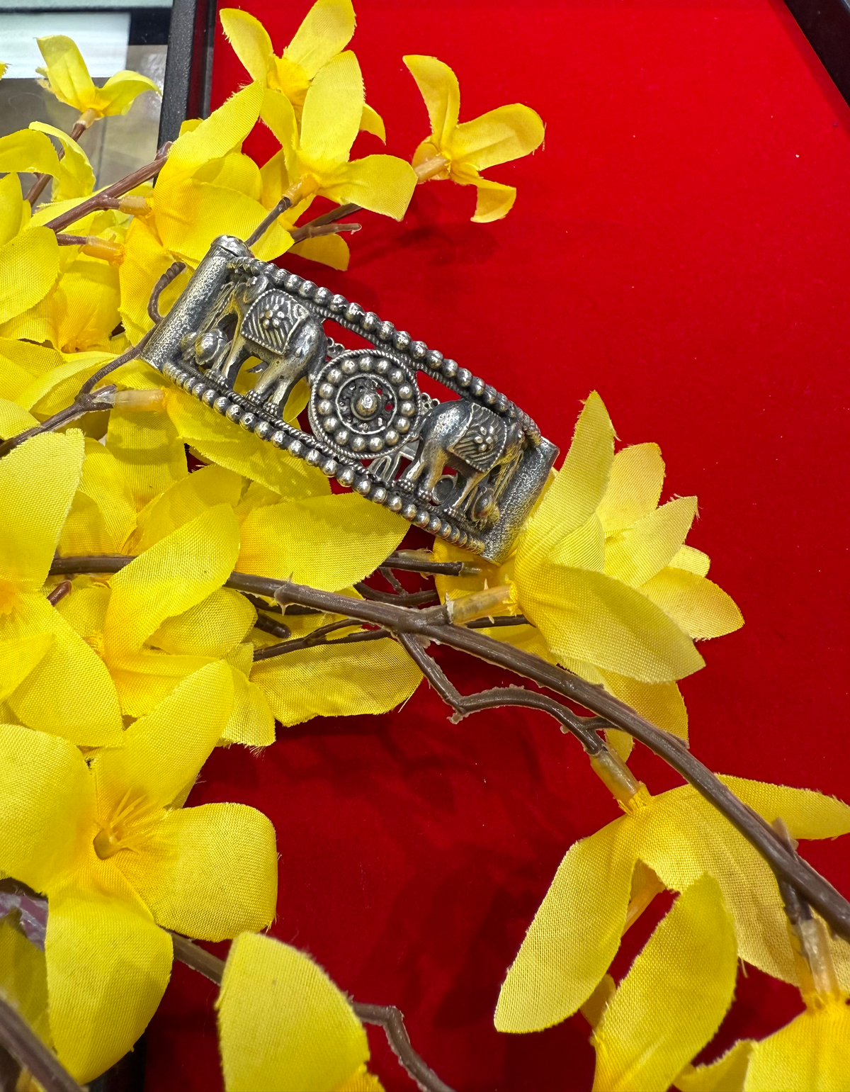 Broad Kada- German Silver Kada with elephant design- openable Kada