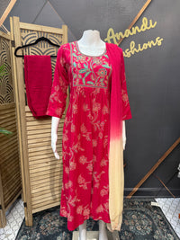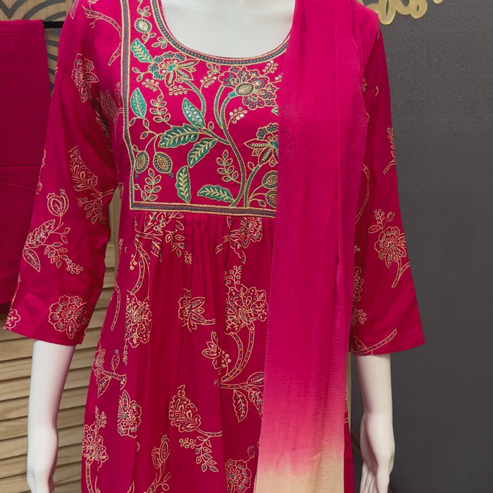 Hot Pink - Kurti set with Embroidery.