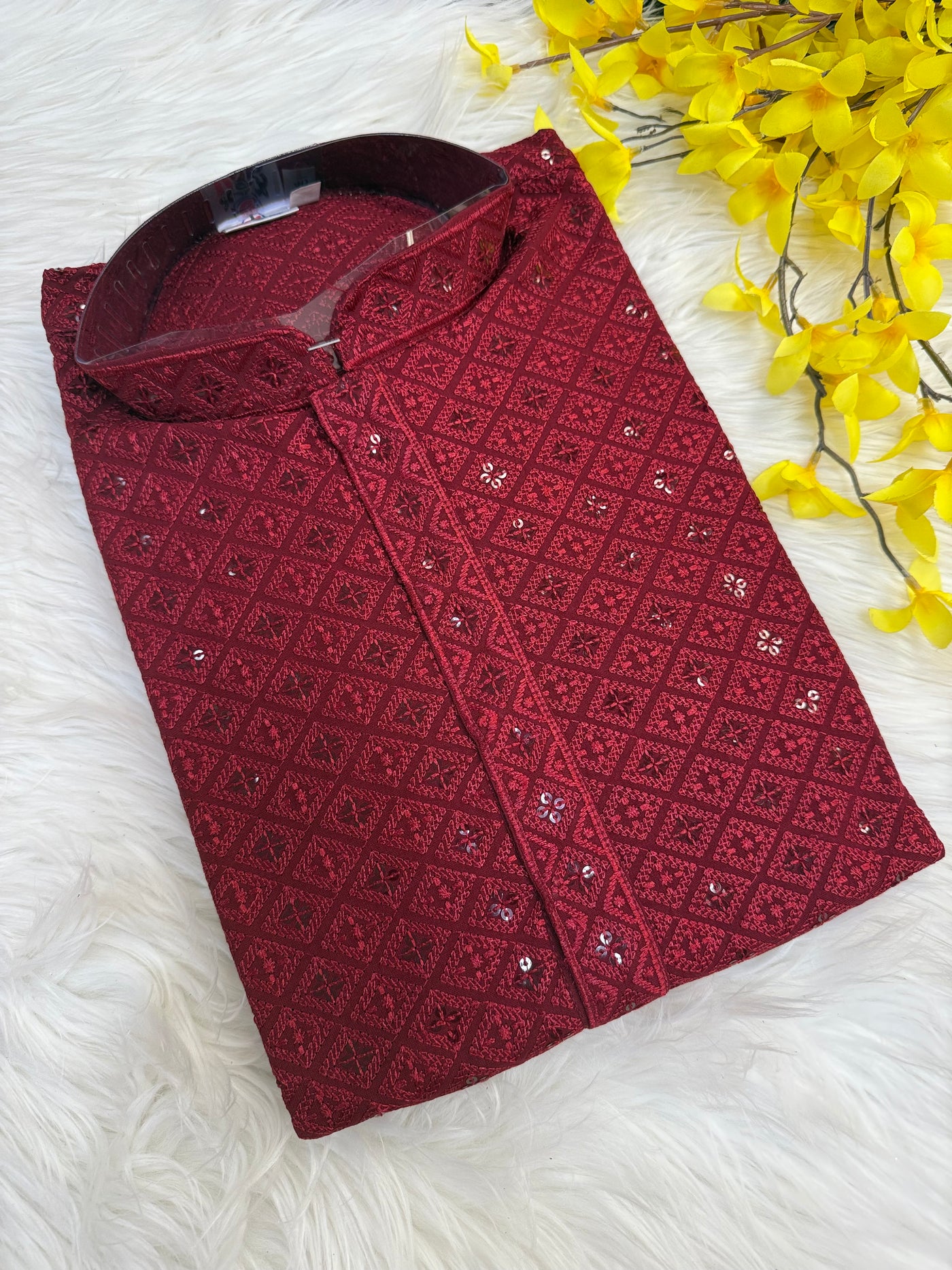 Inform when this item available Maroon Color -Sequence Work Men’s Wear Kurta set