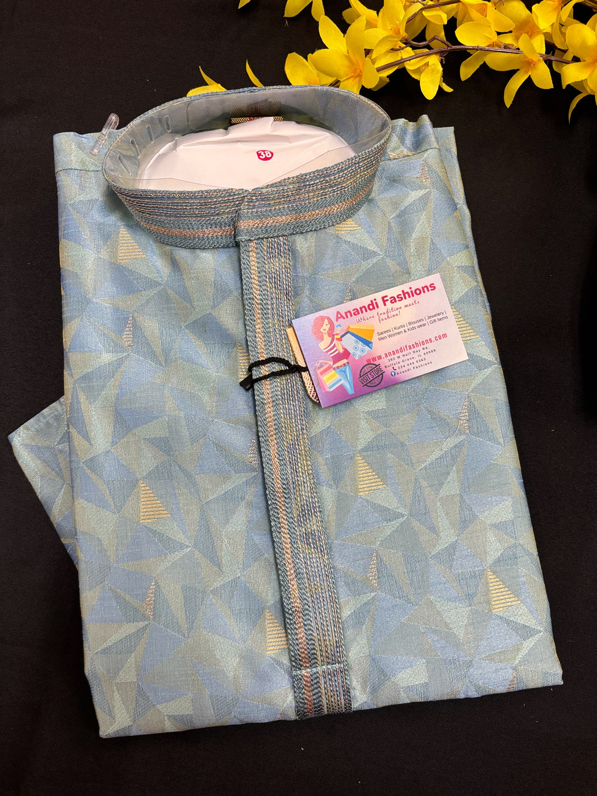Upgrade your traditional wardrobe with our fancy blue color men’s silk kurta pajama set. Made from high-quality silk fabric, this kurta features intricate embroidery and a stylish mandarin collar, giving it a sophisticated and elegant look. Available in sizes 36, 38, 40, and 42, this kurta pajama set is perfect for any special occasion or festive celebration. The comfortable and breathable fabric ensures you stay cool and stylish all day long, while the vibrant blue color adds a pop of color to your ensemble. Pair it with traditional footwear and accessories for a complete and dashing look.