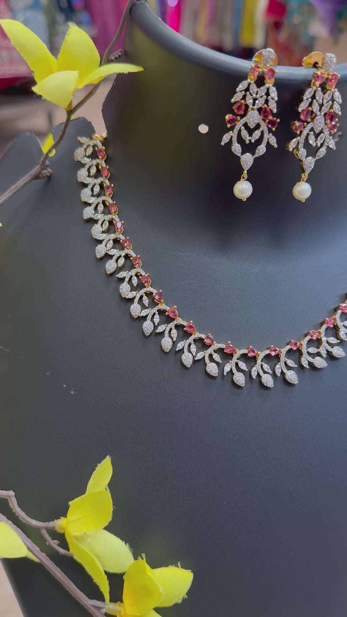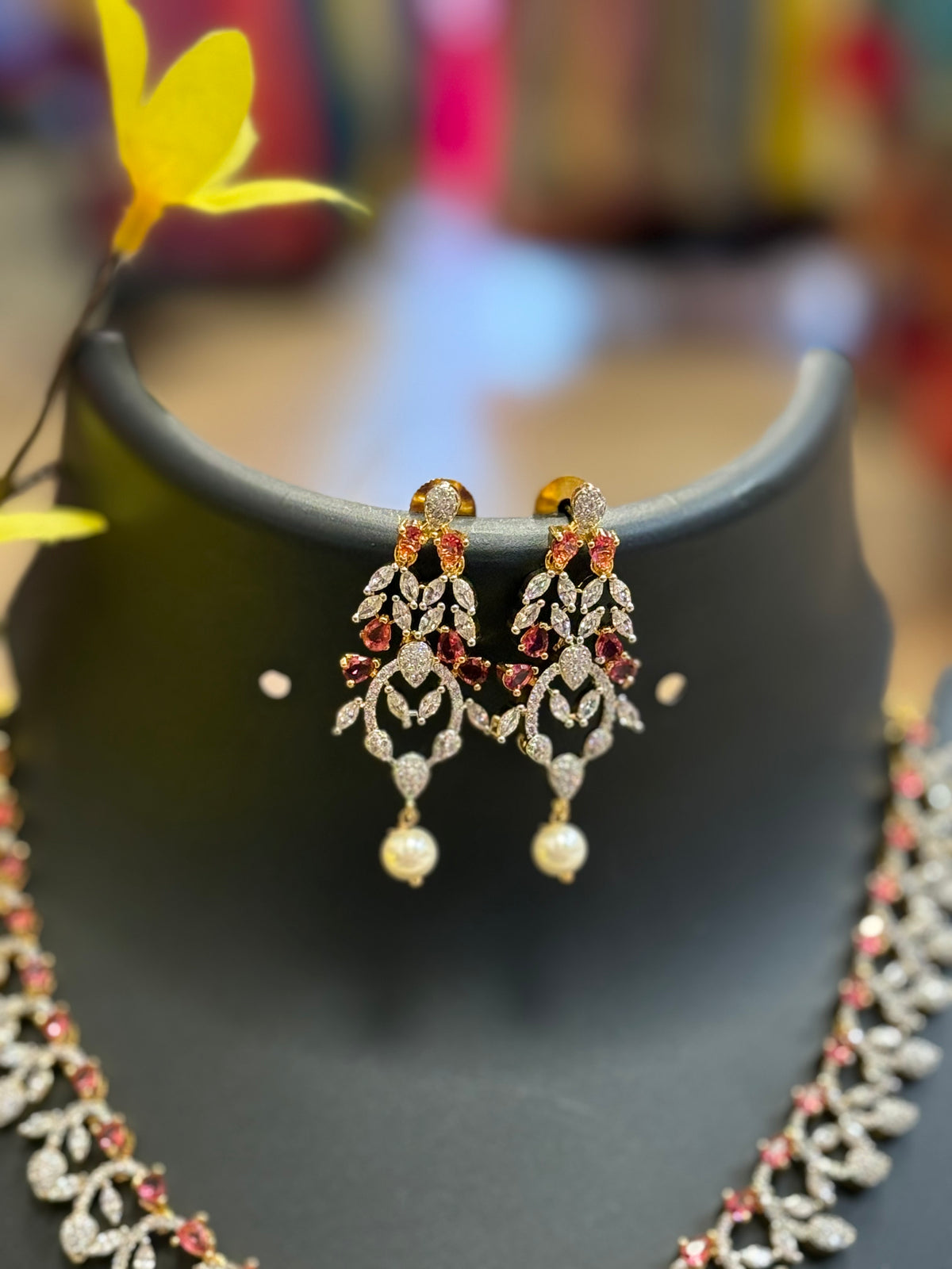 Inform when this item available Party Wear CZ Necklace Set with Red Stones