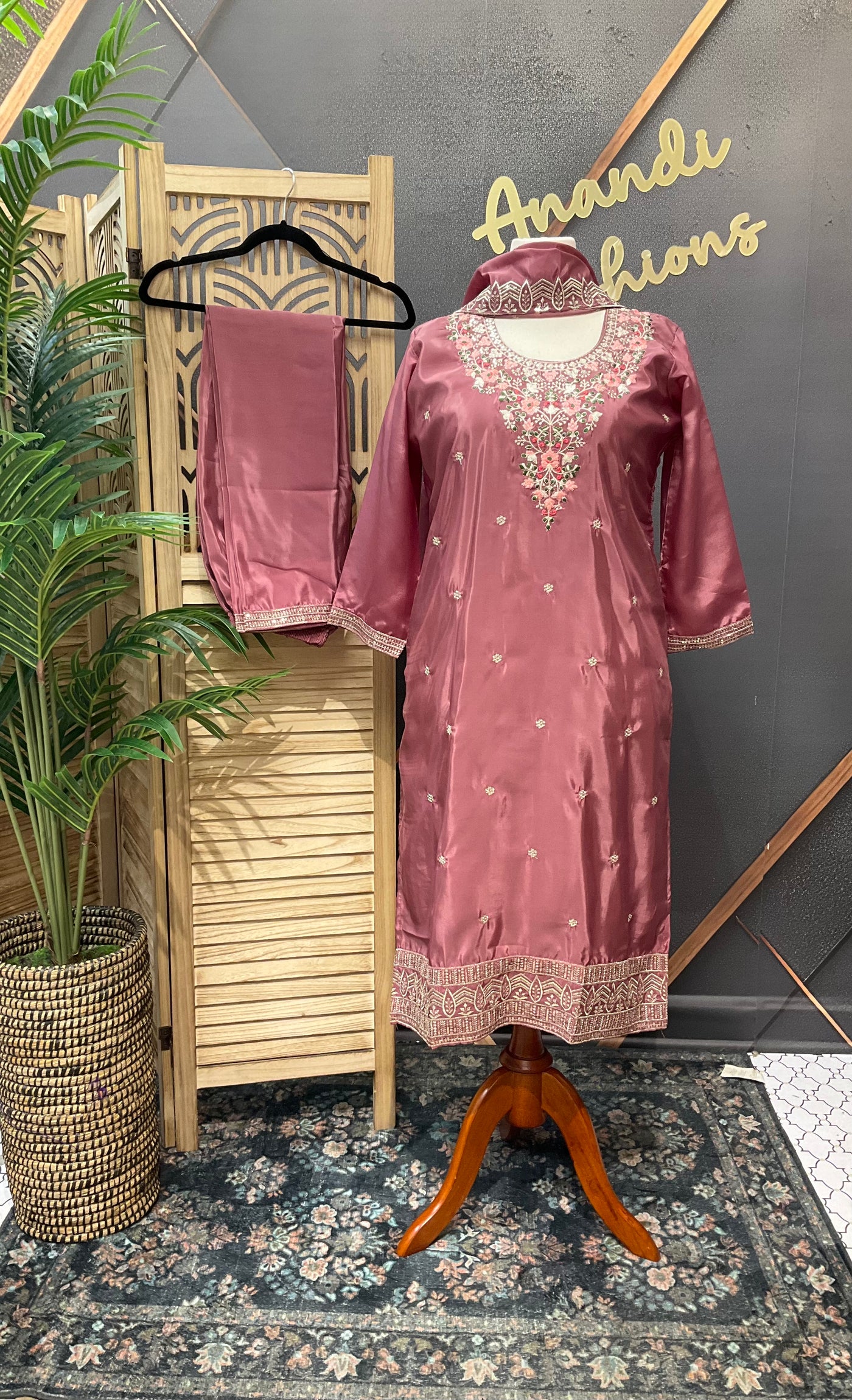 Onion Pink - Party Wear Kurti set with Thread Embroidery work.