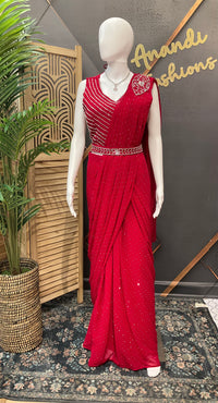 Pink Ready to Wear Saree with Belt. silver color Work on blouse.