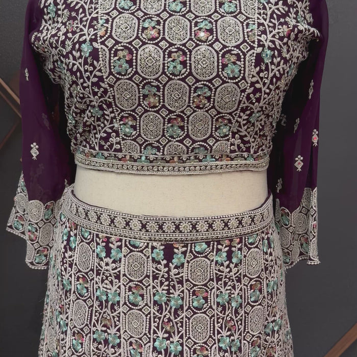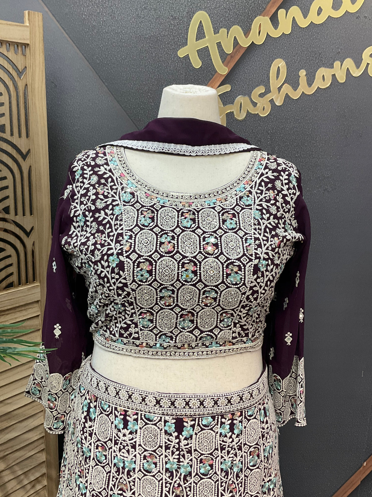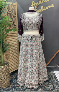 Plus Size - Wine Color -Heavy Work Georgette Lehenga set