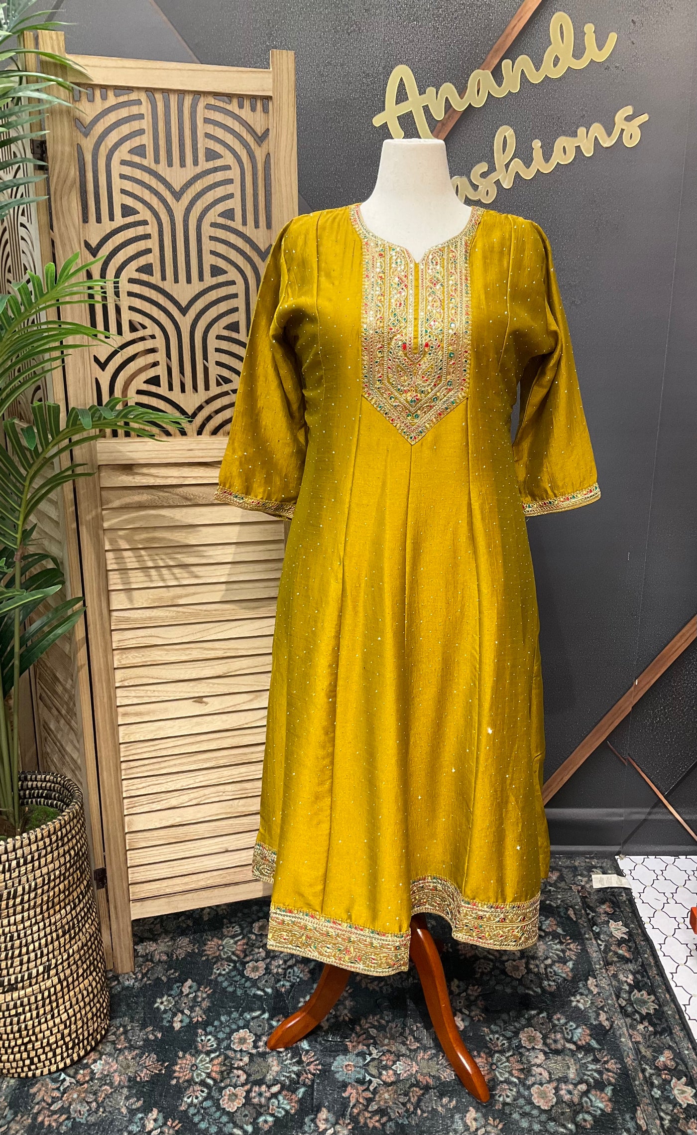 Inform when this item available Plus Size - Mustard Yellow Color Anarkali Kurti set- Size 46/50