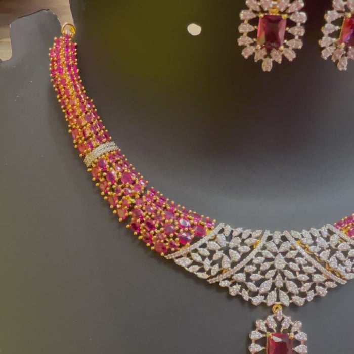 Beautiful Party Wear CZ Ruby Stones Light Weight Necklace set.