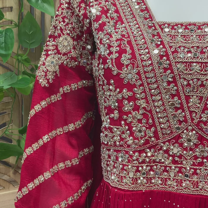 Inform when this item available Size 38-Red Party Wear Long Gown/Dress-vichitra Silk