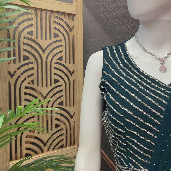 Teal Blue Ready to Wear Saree with Belt. silver color Work on blouse.