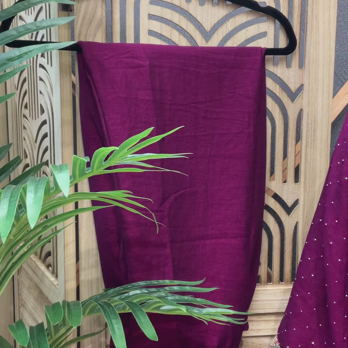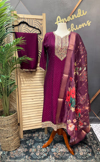 Vichitra Silk - Wine color Anarkali Kurti set with Digital Print Dupatta - available in plus sizes.