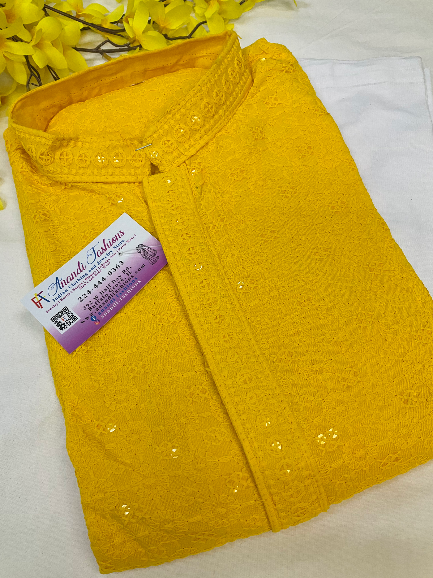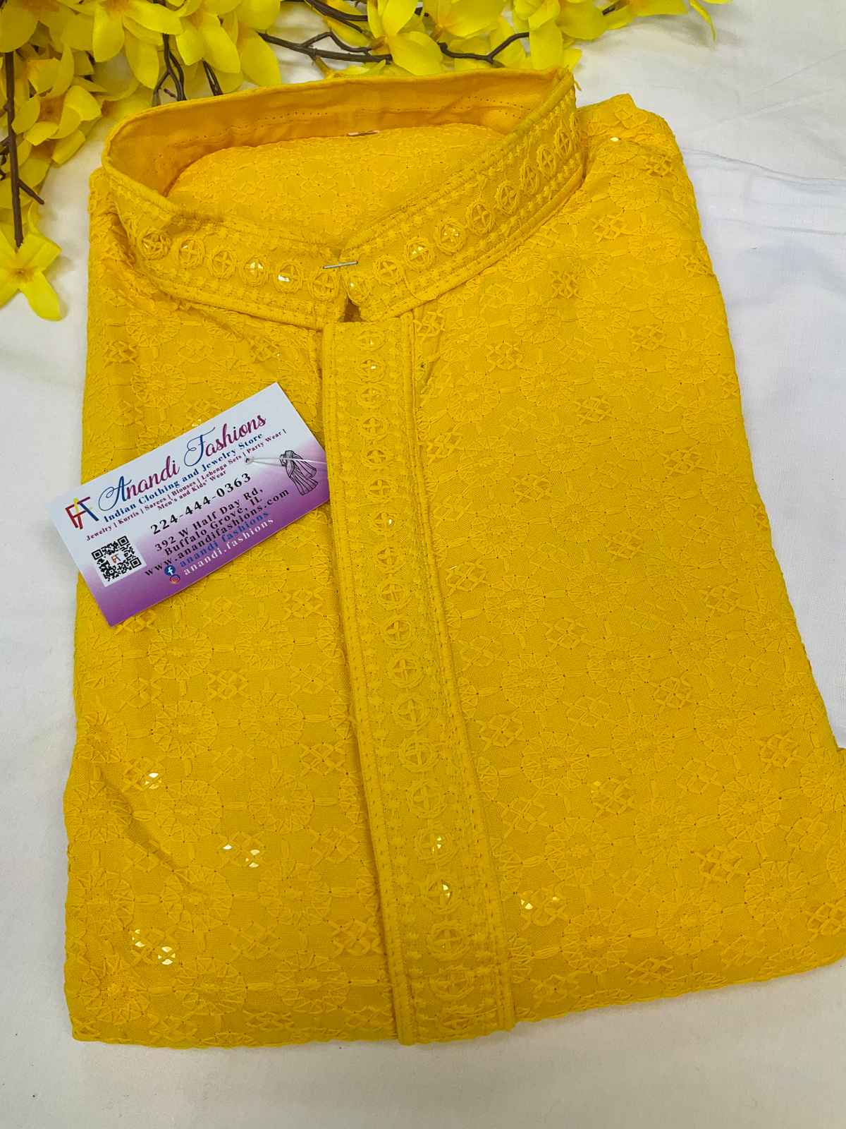 Inform when this item available Yellow chikankari kurta set for men-size 42